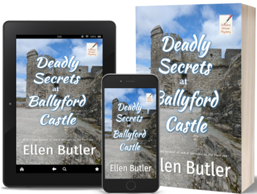 Deadly Secrets at Ballyford Castle is the second book in author Ellen Butler’s historical cozy Ariadne Winter Mystery series, and brings a great change of venue for the young newswoman’s burgeoning investigative skills. This new adventure takes Ariadne to Ireland to attend a weekend house party at the ancestral home of her cousin Julia Brennan’s soon-to-be fiancé, Cormac O’Connell. But rather than an engagement party, the hosts find themselves planning a wake.